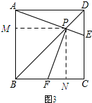 (3)过点P作PM⊥AB,PN⊥BC,垂足分别为M,N,首先证明△PBN为等腰直角三角形于是得到PN+BN=$\sqrt{2}$PB,由角平分线的性质可得到PM=PN,然后再依据LH证明△PAM≌△PFN可得到FN=AM,PM=PN,于是将AB+BF=可转化为BN+PN的长.