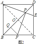 (2)连结AC交BD于点O,依据正方形的性质可知△AOB为等腰直角三角形,于是可求得AO的长,接下来,证明△APO≌△PFQ,依据全等三角形的性质可得到PQ=AO;