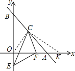 分析 根据非负数的性质得到x+y-8=0,x-y=0,求得x=y=4,于是得到OA=OB=4,∠ABO=∠BAO=45°,由点C为AB的中点,求得OC⊥AB,∠COA=∠BOC=45°根据邻补角定义得到∠CAK=∠COE=135°,推出△COE≌△CAK,根据全等三角形的性质得到OE=AK,CE=CK,根据已知条件得到EF=KF,求得△CEF≌△CKF,根据全等三角形的性即可得到结论.