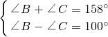 解答:∵∠A的一个外角为158°,∠B与∠C的差为100°,
