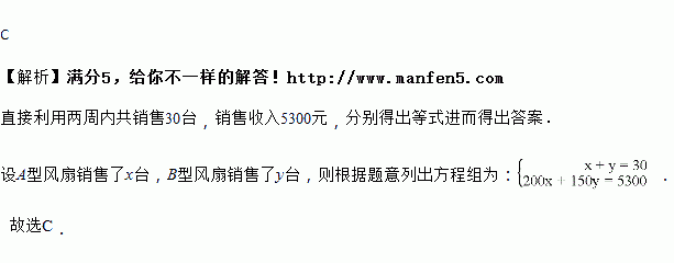 两种型号的风扇,两周内共销售30台,销售收入5300元,![]()