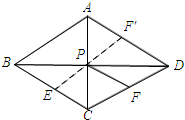 分析 取AD的中点F′,由菱形的性质可知点F′和F关于BD对称,故此PF=PF′,由两点之间线段最短可知当E、P、F′在一条直线上时,PE+PF有最小值,然后求得EF′的长度即可.
