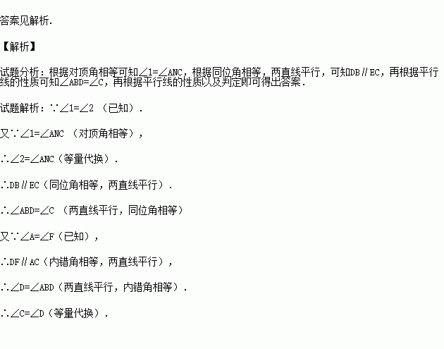 请将下列证明过程补充完整:已知:如图,点B、E分别在AC、DF上,AF分别交BD、CE于点M、N,
