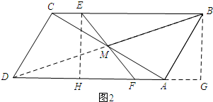ÀíÓÉ£ºÈçͼ2£¬¹ýµãB×÷BG¡ÍADÓëµãG£¬¹ýµãE×÷EH¡ÍADÓÚµãH£¬Á¬½ÓDM£®![]()