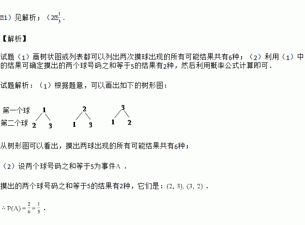 (1)采用树形图法(或列表法)列出两次摸球出现的所有可能结果;