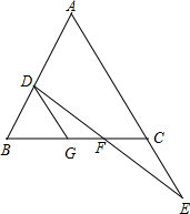 12.如图:E在△ABC的AC边的延长线上,D点在AB边上,DE交BC于点F,DF=EF,BD=CE,过D作DG∥AC交BC于G.