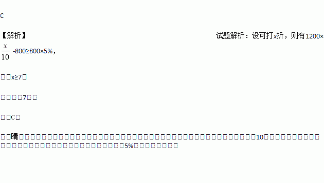 某种商品的进价为800元,出售时标价为1200元,后来由于该商品积压,商店准备打折销售,但要保证利润率不低于5%,则至多可打( )