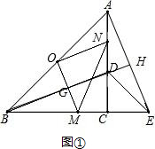 (2)延长BD交AE于H,设BD与OM相交于G,如图①,![]()