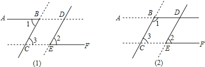 分析:(1)由AB∥EF,可得∠1=∠3,然后由BC∥DE,可得∠3=∠2,最后由等量代换可得∠1=∠2;