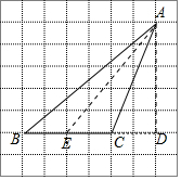 解答 解:(1)△ABC的高AD如图所示.(2)如图线段AE将△ABC分成面积相等的两部分.(3)S△ABC=$\frac{1}{2}$•BC•AD=$\frac{1}{2}$×4×5=10.故答案为10.