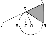 分析:由AC与圆O相切,根据切线的性质得到OD与AC垂直,可得出三角形AOD为直角三角形,设OD=OE=x,用AO=AE+EO,由AE的长及设出的OE表示出OA,再由AD的长,利用勾股定理列出关于x的方程,求出方程的解得到x的值,确定出OD,EB,AO及AB的长,过点D作DF垂直于AB,由直角三角形AOD的面积由斜边OA与DF乘积的一半来求,也可以由AD与DO乘积的一半来求,进而求出DF的长,即为三角形ADB中AB边上的高,求出三角形ADB的面积,再由∠ABC=90°,判定出BC为圆的切线,又CD也为圆的切线,根据切线长定理得到CD=CB,可设CD=CB=y,表示出AC,再由AB的长,在直角三角形ABC中,利用勾股定理列出关于y的方程,求出方程的解得到y的值,确定出CB的长,利用两直角边AB及BC乘积的一半求出三角形ABC的面积,用三角形ABC的面积减去三角形ABD的面积,即可求出三角形BCD的面积.
