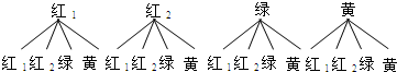 分析:(1)由一个不透明的布袋里装有红球2个,黄球1个,绿球1个,利用概率公式求解即可求得答案;