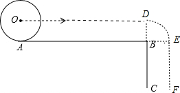 分析:圆心O运动的路程分三部分:⊙O从点A出发到与到点B,再以B点为圆心,r为半径旋转90°,然后运动到C点,利用矩形的性质得到OD=AB,EF=BC,根据弧长公式计算DE弧的长,然后求三段的和即可.