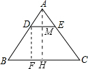 分析:过D作DF⊥BC,过A作AH⊥BC交DE于点M,利用已知条件可求出AM和AE的长,因此也可以求出其比值,即相似比,进而求出当△ADE是等腰三角形时,DE的长.