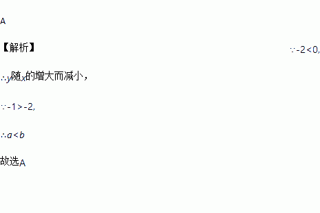 已知一次函数y=-2x+2,点A(-1,a),B(-2,b)在该函数图像上,则a与b的大小关系是( ).