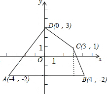 四边形ABCD=$\frac{1}{2}$×4×5+$\frac{1}{2}$×(3+5)×3+$\frac{1}{2}$×1×3=$\frac{47}{2}$.