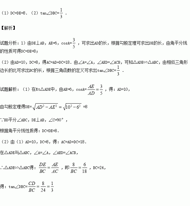 如图,在△ABC中,∠C=90°,点D,E分别在AC,AB上,BD平分∠ABC,DE⊥AB,AE=6,cosA=