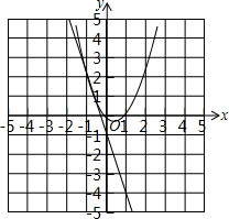 ∴$\left\{\begin{array}{l}{y=-3x-1}\\{y={x}^{2}-x}\end{array}\right.$的解为$\left\{\begin{array}{l}{{x}_{1}=-1}\\{{y}_{1}=2}\end{array}\right.$,$\left\{\begin{array}{l}{{x}_{2}=-1}\\{{y}_{2}=2}\end{array}\right.$.