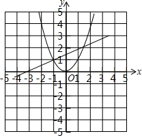 解答 解:(1)在同一坐标系中画出函数y=$\frac{1}{2}$x+$\frac{3}{2}$与y=x2的图象,如图1所示,![]()