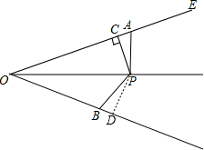 分析 作PD⊥OB于D,根据角平分线的性质就可以得出PC=PD,根据HL可以判断△PCO≌PDO,从而可得OC=OD,然后根据AAS就可以得出△ACP≌△BDP,从而得到AC=BD,进而得出AO+OB=2OC=8.