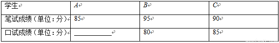 某校举办初中生演讲比赛,每班派一名学生参赛,现某班有A,B,C三名学生竞选,他们的笔试成绩和口试成绩分别用两种方式进行了统计,如表和图1: