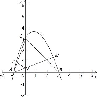 (2)过点D做DE⊥AC交AC于点E,利用∠CAM=45°,表示线段EC长度,构造相似三角形,求出线段DC、DO,写出点D坐标,利用点A、D求出直线AM解析式,与二次函数联立方程组即可求出点M的坐标;