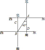 | B、北偏东40° |