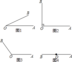解答 解:如图所示:图1是锐角,图2是直角,图3是钝角,图4是平角.