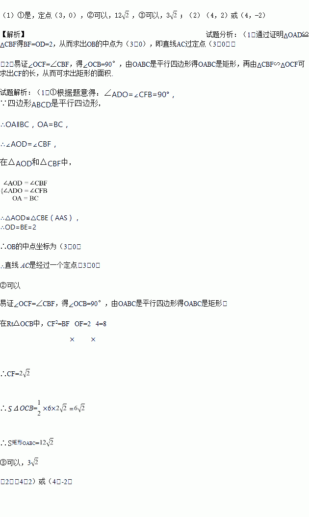 ②□OABC是否可以形成矩形?如果可以,请求出矩形OABC的面积;若否,请说明理由.