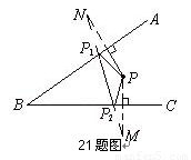 如图所示,∠ABC内有一点P,在BA、BC边上各取一点P1、P2,使△PP1P2的周长最小.