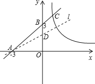 ∴直线y=x+3与x轴交点为A(-3,0),与y轴交点为B(0,3)