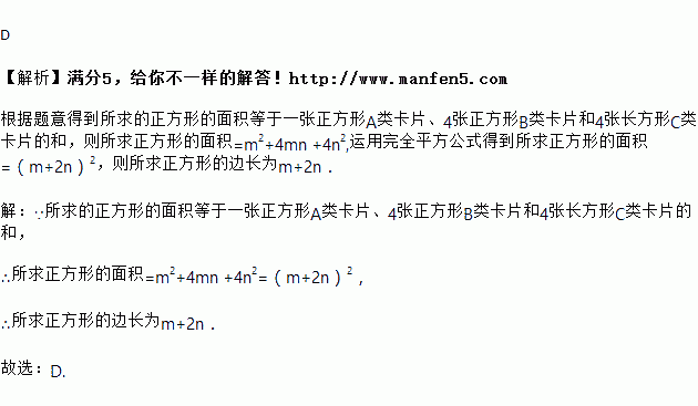 三种不同类型的纸板的长宽如图所示,其中A类和C类是正方形,B类是长方形,现A类有1块,B类有4块,C类有5块. 如果用这些纸板拼成一个正方形,发现多出其中1块纸板,那么拼成的正方形的边长是( )