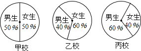 从下面三个统计图中,可以判断哪个学校的女生人数最多?(  )
