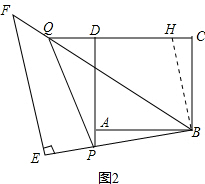 分析 (1)延长PA到H,使AH=CQ,连结PQ,先利用“SAS”可判断△ABH≌△CBQ,则BH=BQ,∠HBA=∠QBC,由于∠PBQ=45°,∠ABH+∠ABP=45°,得到∠HBP=∠PBQ,然后再根据“SAS”证明△PBH≌△PBQ,则PH=PQ,即HA+PA=PQ,所以PQ=CQ+AP;