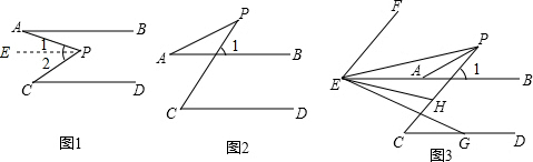 (3)如图3,点E在直线AB上,若∠APC=20°,∠PAB=30°,过点E作EF∥PC,作∠PEG=∠PEF,∠BEG的平分线交PC于点H,求∠PEH的度数.