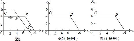 如图在平面直角坐标系中,已知直角梯形OABC的顶点分别是O(0,0),点A(9,0),B(6,4).点P从点C沿C-B-A运动,速度为每秒2个单位,点Q从A向O点运动,速度为每秒1个单位,当其中一个点到达终点时,另一个点也停止运动.两点同时出发,设运动的时间是t秒.