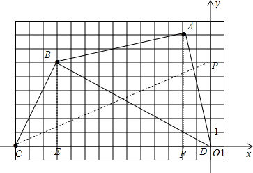 分析 (1)根据点A、B、C、D的坐标,在坐标系描出各点,作BE⊥x轴于E,AF⊥x轴于F,然后利用S四边形ABCD=S△ADF+S梯形ABEF+S△BCE进行计算;