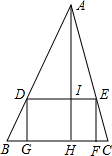 如图,在△ABC中,内接矩形DEFG,其中,点D、E分别在边AB、AC上,点G、F在边BC上,如果EF:DE=2:3,BC=8,高AH交DE于点I,且AH=10,求四边形DEFG的周长.