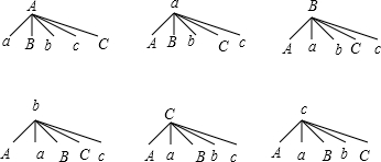 解答 解:画有等腰直角三角形的卡片剪开成两张小卡片用A、a表示,画有菱形的卡片剪开成两张小卡片用B、b表示,画有圆的卡片剪开成两张小卡片用C、c表示,
