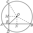 分析:过O分别作AB、CD的垂线,垂足分别为N,M,然后连接OC,OB,根据已知条件就可以得到四边形OMEN是矩形,然后利用勾股定理可以得到OB
