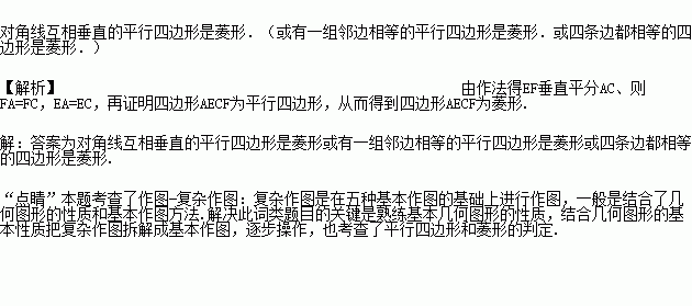 请回答:在小凯的作法中,判定四边形AECF是菱形的依据是______________________.
