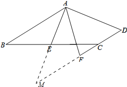 分析 (1)延长AE、DF交于点M,证明△ABE≌△MCE,AB=MC,再由∠BAE=∠EAF,∠BAE=∠M,得出△AMF是等腰三角形,AF=MF,因此AB=MC=MF+FC=AF+CF;