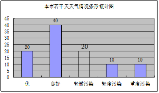 (2)轻微污染的天数是100-20-40-10-10=20,补全条形统计图如图所示,