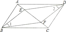 分析:(1)根据平行四边形的性质得到AB=CD,∠BAE=∠DCF,再根据BE∥DF得到∠BEF=∠DFE,所以它们的邻补角相等,三角形全等;