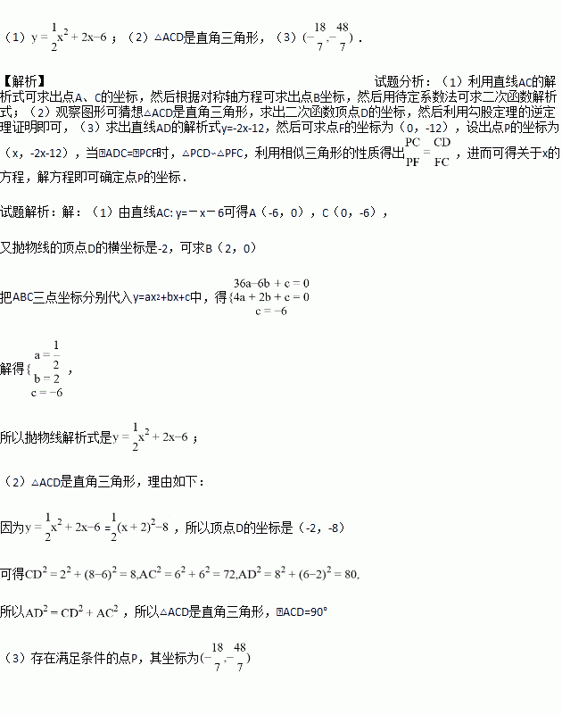 如图,已知抛物线y=ax2+bx+c与x轴交于点A、B,与直线AC:y=-x-6交y轴于点C、D,点D是抛物线的顶点,且横坐标为-2.