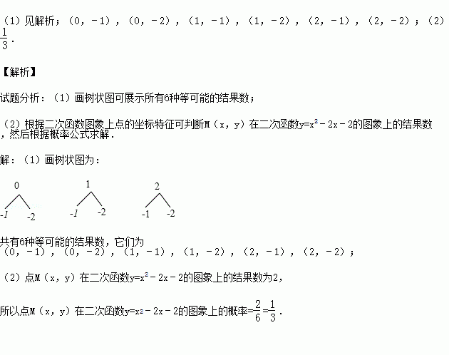 (2)求点M(x,y)在二次函数y=x2﹣2x﹣2的图象上的概率.