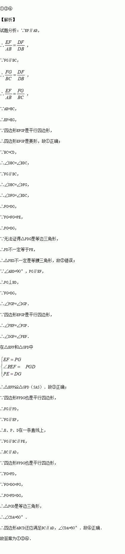 ④若四边形FPDG也是平行四边形,则BC∥AD且∠CDA=60°.