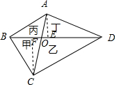 分析 作AE⊥BD,CF⊥BD,设OB=m,OD=n,AE=h1,CF=h2,然后利用三角形的面积公式分别表示出甲、乙、丙的面积,从而找出m、n的关系,h1,、h2的关系,进而求出丁的面积.