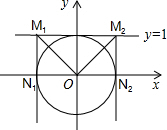 解答 解:令⊙O与x轴的交点为N1、N2,过点N1、N2分别做N1M1、N2M2垂直于直线y=1于点M1、M2,如图所示.![]()