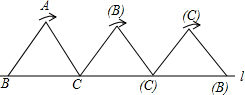 如图,将边长为1cm的等边三角形ABC沿直线l向右翻动(不滑动),点B从开始到结束,所经过路径的长度为